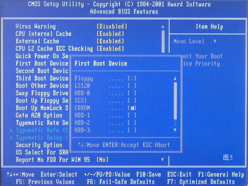 看到那个圈圈住的地方了吗,按回车进入,选择下图所示的然后按光标选择CDROM,按回车确认