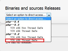c. 选择合适的版本,这里需要注意的是VC9是IIS用的,VC6是给Apache用的
