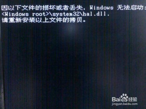 1、无法启动提示hal.dll损坏或丢失,实际上可能该文件并不一定说在系统中不存在,而按照系统提示要求,拷个一个hal.dll文件到system32里,根本是不可以解决的。