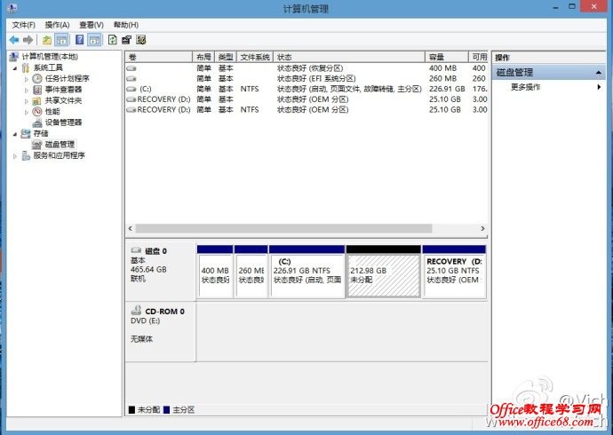 windows8系统自带的磁盘管理工具实现简单无损分区