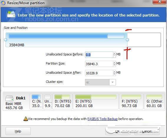 拖动上面的硬盘容量进度条,如果感觉到不精确,还是输入数字把,扩容的容量就非常精确了,不过输入数字时,有时你发现输入的分区是没有用的,先把剩余的D盘容量确定好吧!也是剩下分区吧!