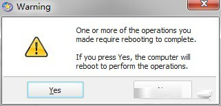 第一个警告!别怕,勇敢的确认啊,警告提示意思"就是一个或者多个操作需要系统重新启动!"