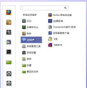 第五步:下图为互联网分类,有火狐、QQ国际象棋、Thunderbird邮件/新闻、远程桌面、飞信与飞鸽传书。