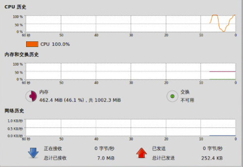 第九步:下图为系统监视器窗口,在资源分类下,可以看到CPU、内存与网络的使用情况。