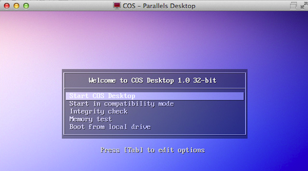 第二步:选择好系统以后,继续下一步,即可看到COS的初始页面,“Automatic boot in 10 second”,在10秒内系统会自动运行,如果要进入选择界面的话,需要在这里10秒内按 TAB 键。