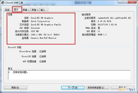 3、同样地,点击“显示”选项卡,可以查看电脑的显卡基本信息,如下图所示: