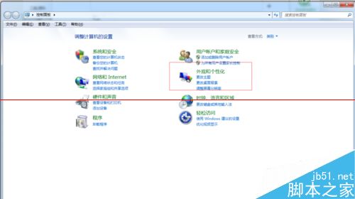 2、进入控制面板界面后,我们点击外观和个性化设置,进入外观和个性化详细界面。