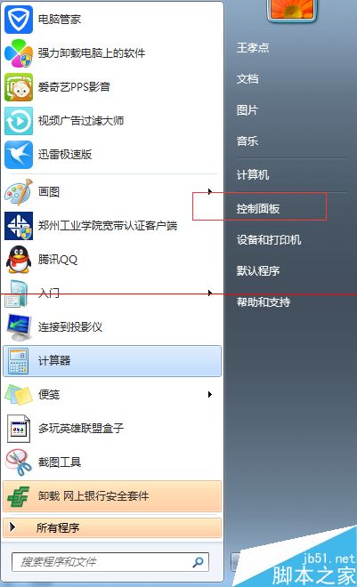 1、首先我们打开电脑左下角开始菜单,打开右上角的控制面板;