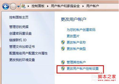 图3、“用户账户和家庭安全”介面然后再进入“更改用户账户控制设置”。