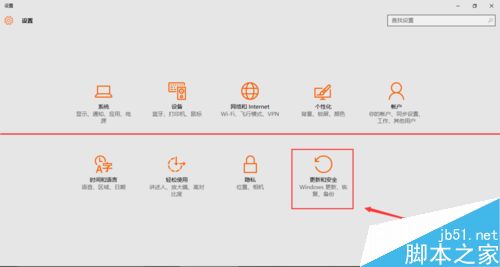 2、在设置页面里找到“更新与安全”按钮,点击“更新与安全按钮”进入更新与安全的设置页面。