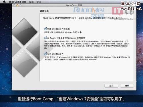使用修改好的Info.plist将源文件替换,运行Boot Camp,此时“创建Windows 7安装盘”选项可选,破解成功!勾选“从Apple下载最新的Windows支持软件”,在制作过程中会下载相应驱动程序,也会消耗不少时间。如果您有驱动程序,那么这步可以跳过。