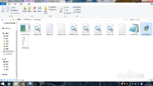 9、如果打算卸载Aero Glass for Windows8.1打开C:\AeroGlass,运行其目录下的unins000.exe进行卸载操作