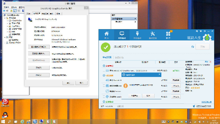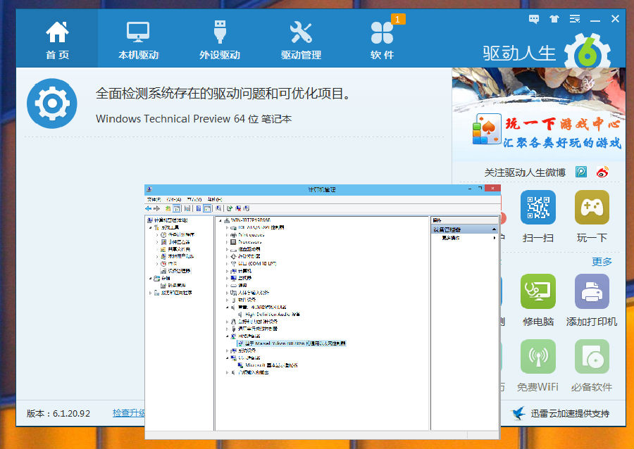 然而Windows10系统正式版预计明年年初才推出,对于一些发烧友,比如小编,想第一时间先体验下预览版的新功能,但随之而来的驱动问题又不知从和下手,加上目前各个硬件厂商都还没有公布支持Win10系统的驱动程序,实在很苦恼的说。作为一个菜鸟,驱动人生一直都是大多数用户装驱动的首选,小编就成功用驱动人生成功安装驱动,下面就大家展示下: