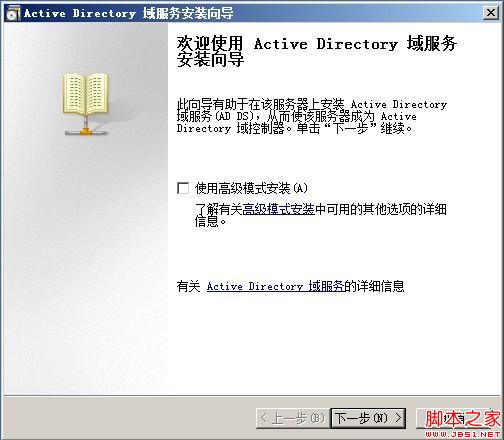 弹出 Active Directory 域服务安装向导,并点击“下一步”按钮