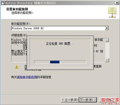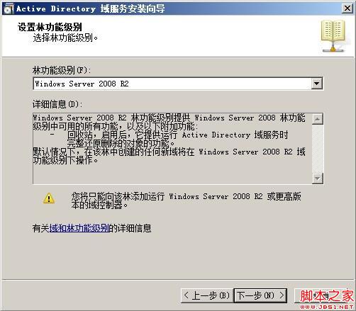 林功能级别选择“Windows Server 2008 R2” 并点击“下一步”按钮