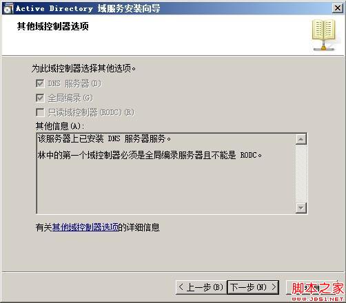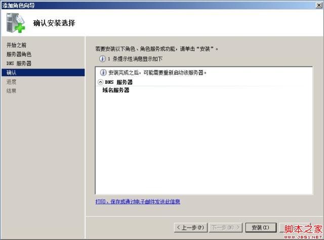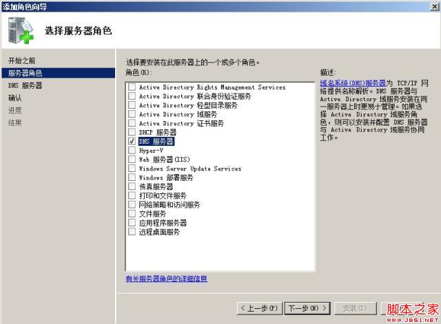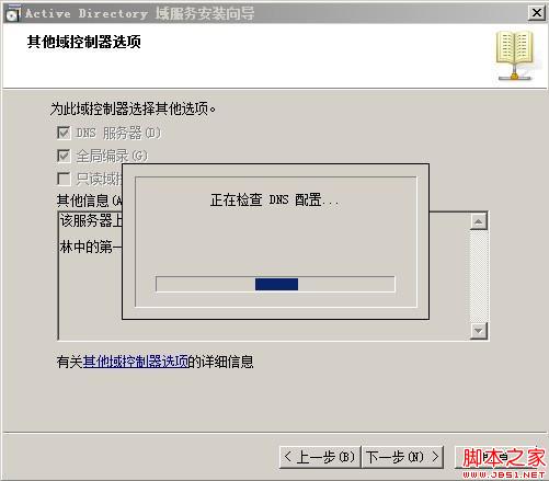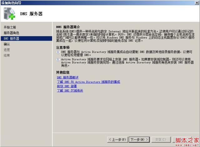 点击“下一步”按钮,如果最初没有安装DNS服务器,此处可以勾选并安装