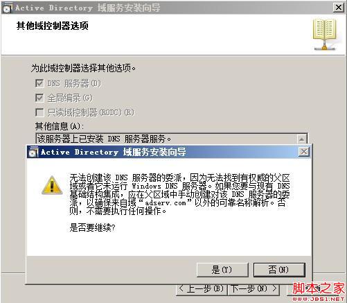 弹出DNS提示框,点击“是“按钮,继续安装