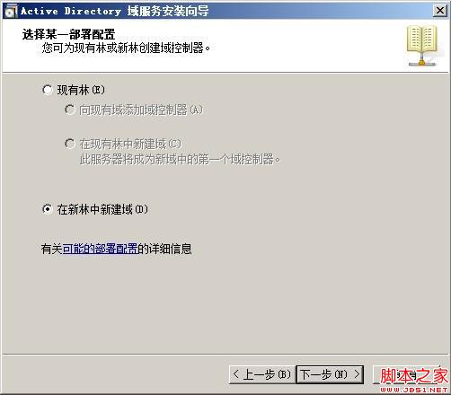 选择“在新林中新建域”并点击“下一步”按钮