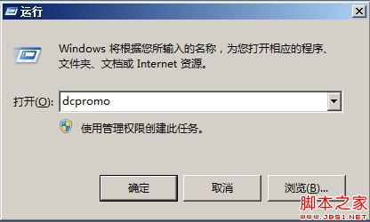 开始菜单-->运行-->输入命令“dcpromo”à点击“确定” 按钮