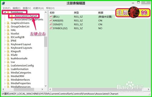 在Control的展开项中找到FontAssoc,并展开FontAssoc,在FontAssoc展开项中找到:Associated Charset并左键单击:Associated Charset;