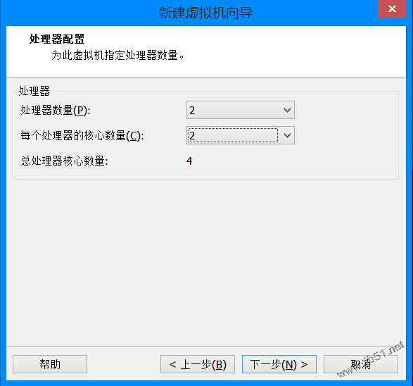 设置处理器的配置,这里需要看个人电脑配置,我是四核8线程的i7,这里就选了2*2,如果CPU核心数不多,就选择1*2