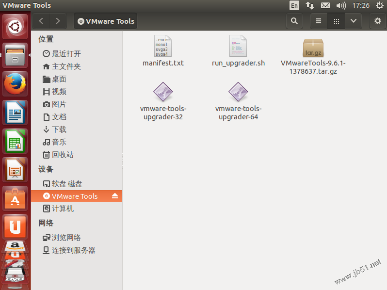 运行“vmware-tools-upgrader-64”无反应,把VMwareTools.tar.gz 文件拷贝而到桌面,右键提取到此处,会解压为一个 vmware-tools-distrib 目录