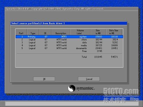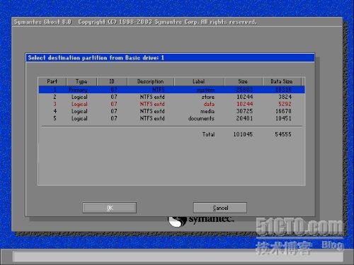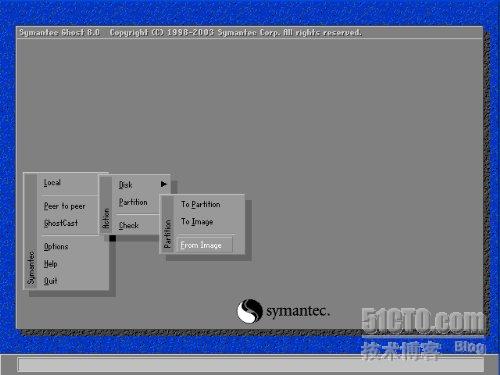 Local > Partion >To Partion :分区的对拷;就是将一个分区的内容COPY到另外的一个分区,这里会把另外的分区的数据覆盖掉,这个要注意咯,像个人的系统备份一般都不会用这一个选项。