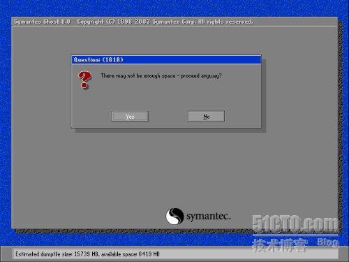 (2)空间不够的提示:是否将镜像文件存储在多个分区上