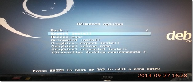直接进入的系统的安装界面,安装有多个选项,最简单直接的的就是一路直接默认下去,这是最便捷。我这里选择的是Advanced option