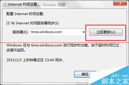4、勾选与Interne时间t服务器同步,在服务器类型中选择time.windows.com,点击右侧的立即更新按钮