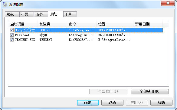4、单击“启用”标签卡,然后点击“全部禁用”并确定。