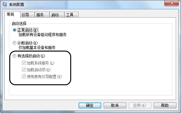 1、在“常规”选项卡上,单击“有选择的启动”。