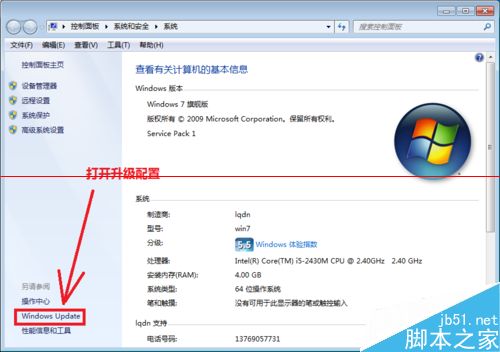 2、进行安全模式后,指向计算机机,右键属性。在左下角,打开”windows update".