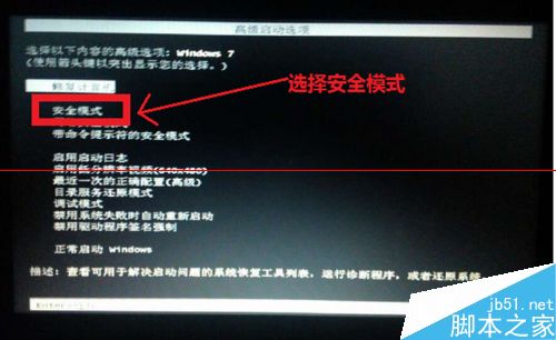 1、重新开机启动,按F8键,选择安全模式进入系统。