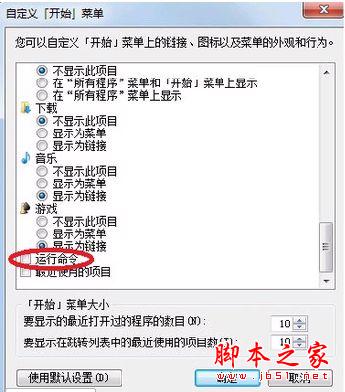 打开“属性”——“开始菜单”标签——“自定义”,如下图: