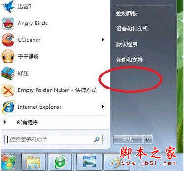 windows7开始中一开始是没有“运行”的,如下图红色椭圆处所示空白: