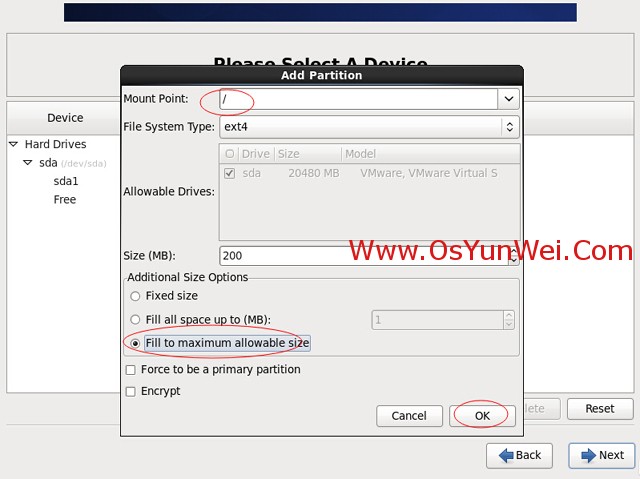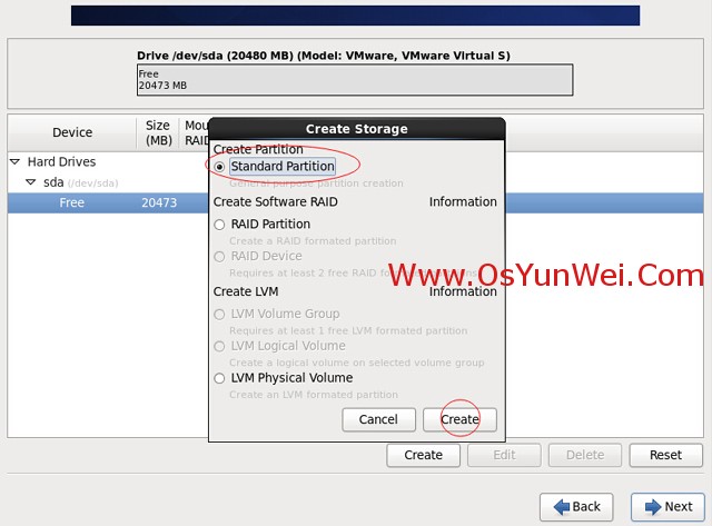 可以看到硬盘的容量,我这里显示的是20G,现在自定义分区。