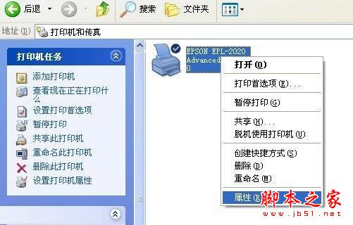3、在已安装的打印机上,点击右键,选择“属性”:
