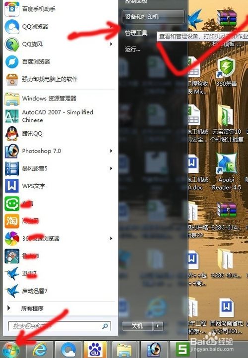 1、点击电脑左下角的开始菜单,点击设备和打印机