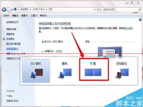 5、现在如果你想在你的电脑上面操作,其他人看投影仪,那么我们就可以选择“复制”也就是第二个。