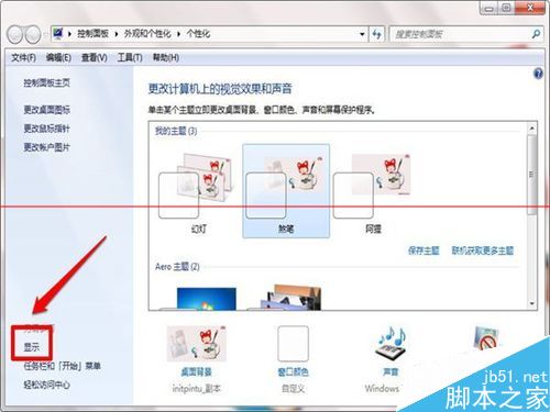 2、在单击个性化之后,又会出现一个大一点的对话框,我们选择里面的“显示”单击,在对话框的下半部分那里。