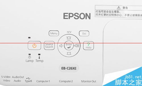 1)按投影仪或遥控器上的电源按钮启动投影仪,机身上的电源灯即开始闪烁,接通电源后常亮红色。