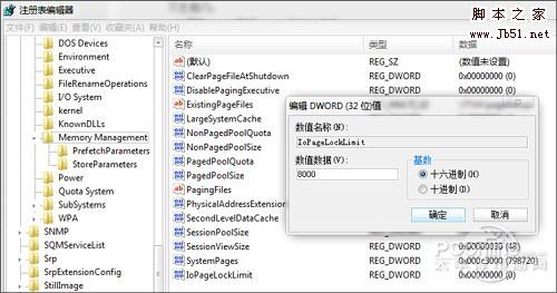 * “IoPageLockLimit”:众所周知BT下载一般都是很变态的,因此这个键值就显得十分有用了。它的作用是提高系统输入/输出设备与CPU之间的通道,以便在缓冲数据时更流畅。一般来讲目前的内存配置可以将数值直接设为8000(十六进制),换算为十进制后为32MB。如果你平时经常使用BT,设好后会发现原本狂闪的硬盘灯一下子变得安静多了。
