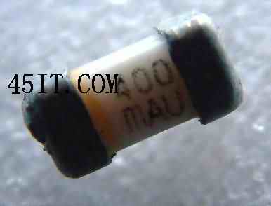 这类保险电阻的外形类似贴片电解电容,不过其颜色为白色,其上一般也有字母标注承载电流大小,如:400mAU,表示其通过的最大电流为400MA。