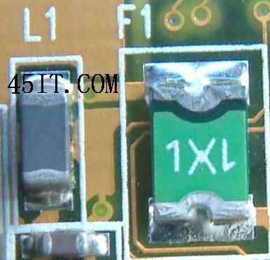 上图右边的墨色的保护电阻中间有白色,这是已经被烧断标志。用万用表测量时呈断路状态。