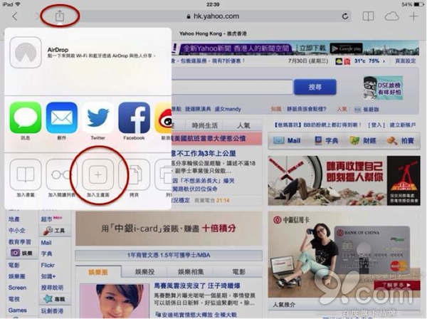 iPad 屏幕大,用来浏览网页效果很好!在 Safari 中,打开你所选择的网站,然后按红框所示位置,然后单击添加入主屏幕,方便在主界面轻松点击和更快速地打开该网站。