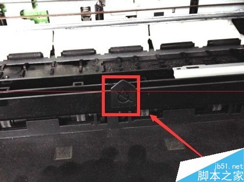 3、箭头指向的是缺墨位置,点完上一步的换墨键后 墨仓中的缺墨墨盒就会移动到缺墨位置,就是箭头指向的位置,