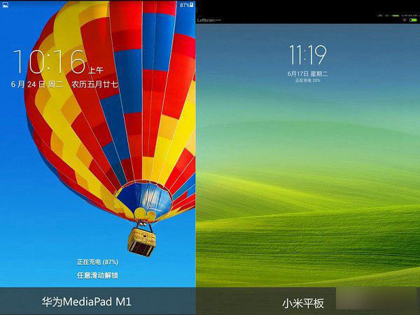 小米平板采用大家熟知,并广受欢迎的MIUI V5系统,基于安卓4.4内核,锁屏界面很清新。而华为M1平板电脑采用升级版Emotion 2.0界面,基于Android 4.4.2内核,界面清新雅致,使用也很方便。
