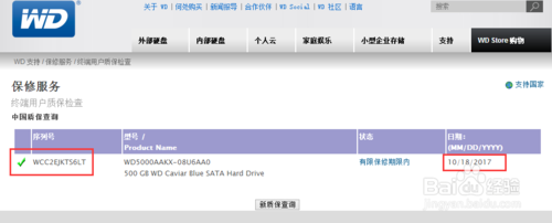 7、结果是有质保的,质保日期也显示在了右边。这种硬盘出现在问题就可找商家之外还可以直接找厂家质保的。