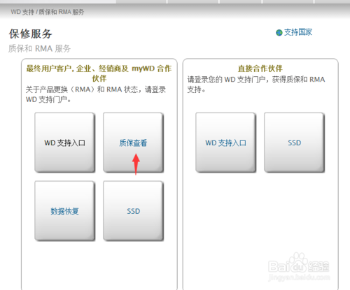 1、进入西数硬盘的官网,找到【保修与RMA服务】。